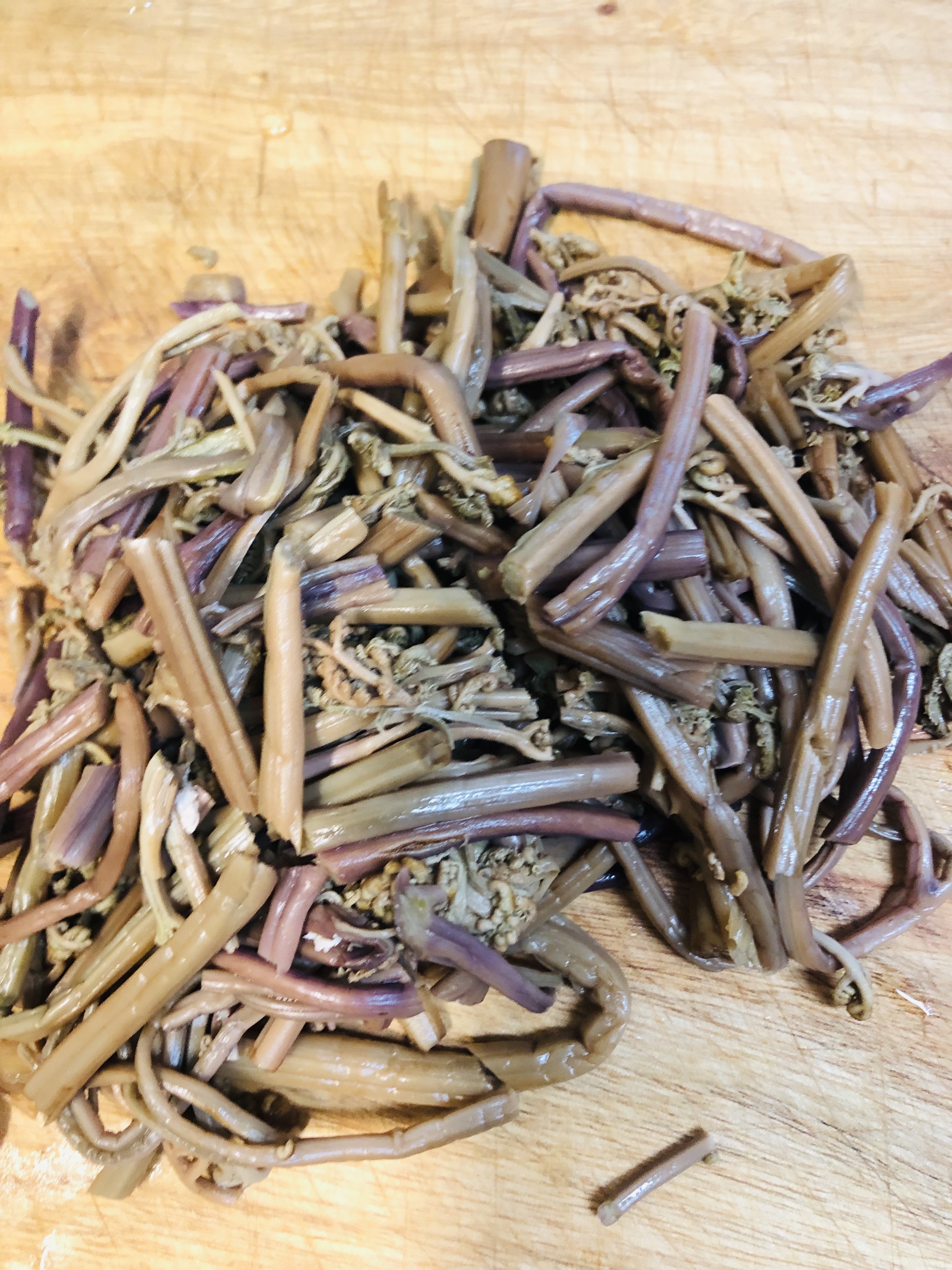 3. 고사리는 시판용이에요~ ㅋ 그릇에 담아 헹궈준 다음 물기 꼭 짜서 먹기 좋은 크기로 잘라 줍니다.