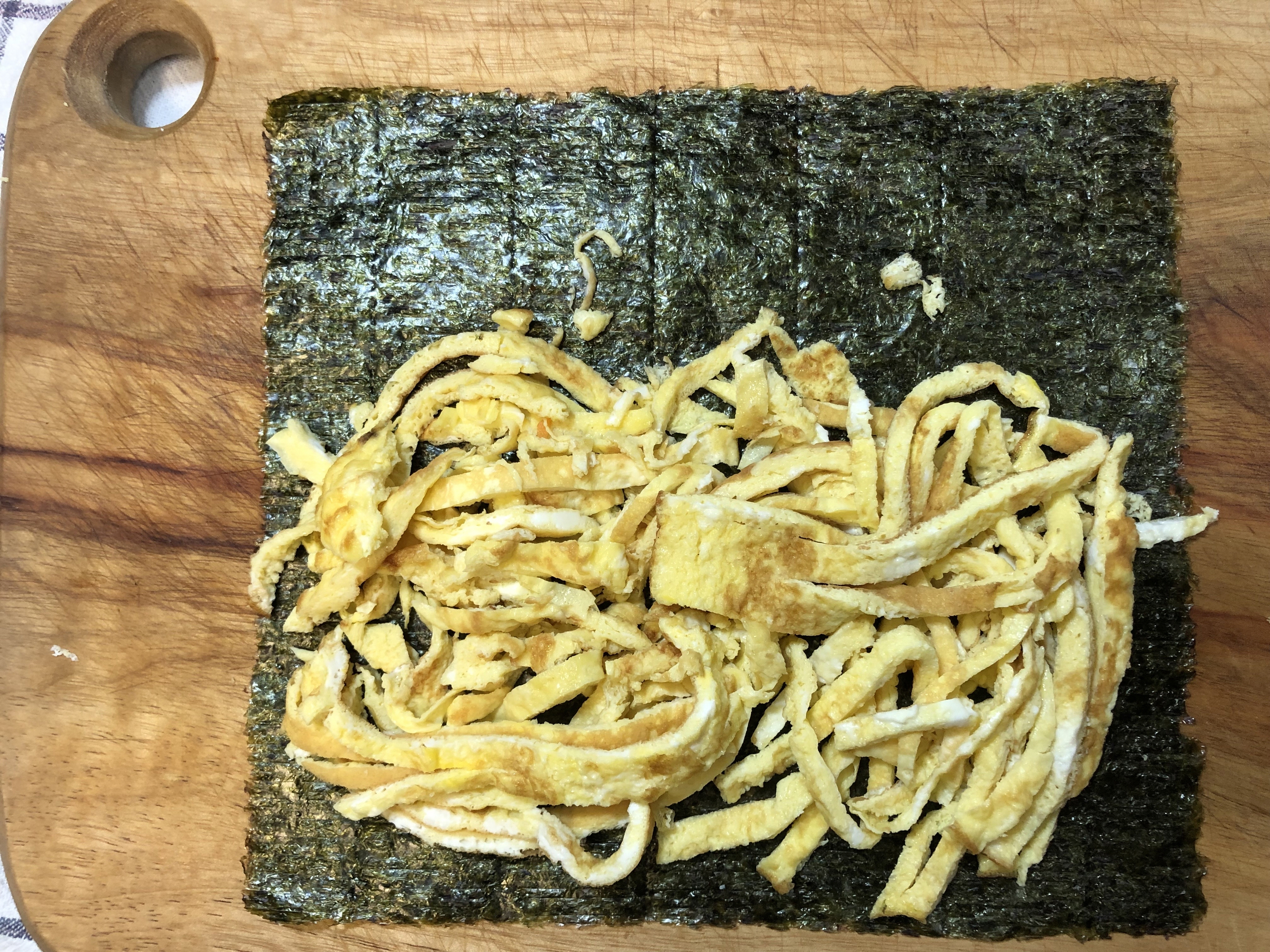밥이 아니고 댤걀이라 김밥 모양 잡기가 좀 어렵네요 ㅡㅡ: