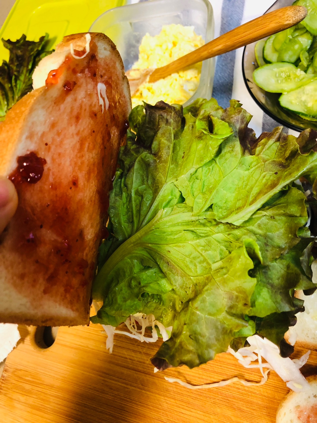 상추 ->딸기잼 바른 식빵으로 덮어주기