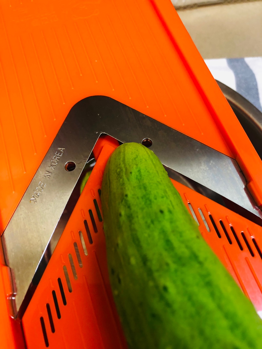 5. 오이를 베이킹소다로 문질문질 잘 닦은 후 채칼로 슥슥~