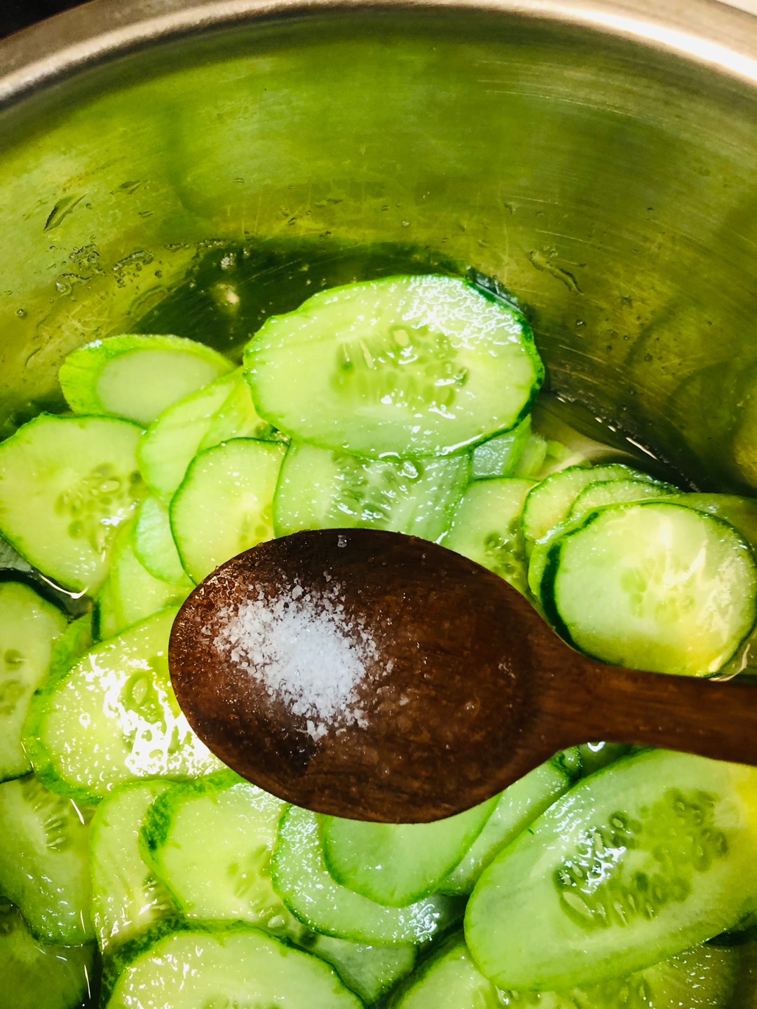6. 얇게 채 썬 오이에 식초 18T , 설탕 5T를 넣고 섞은 후 10분 정도 잠시 재워 둡니다