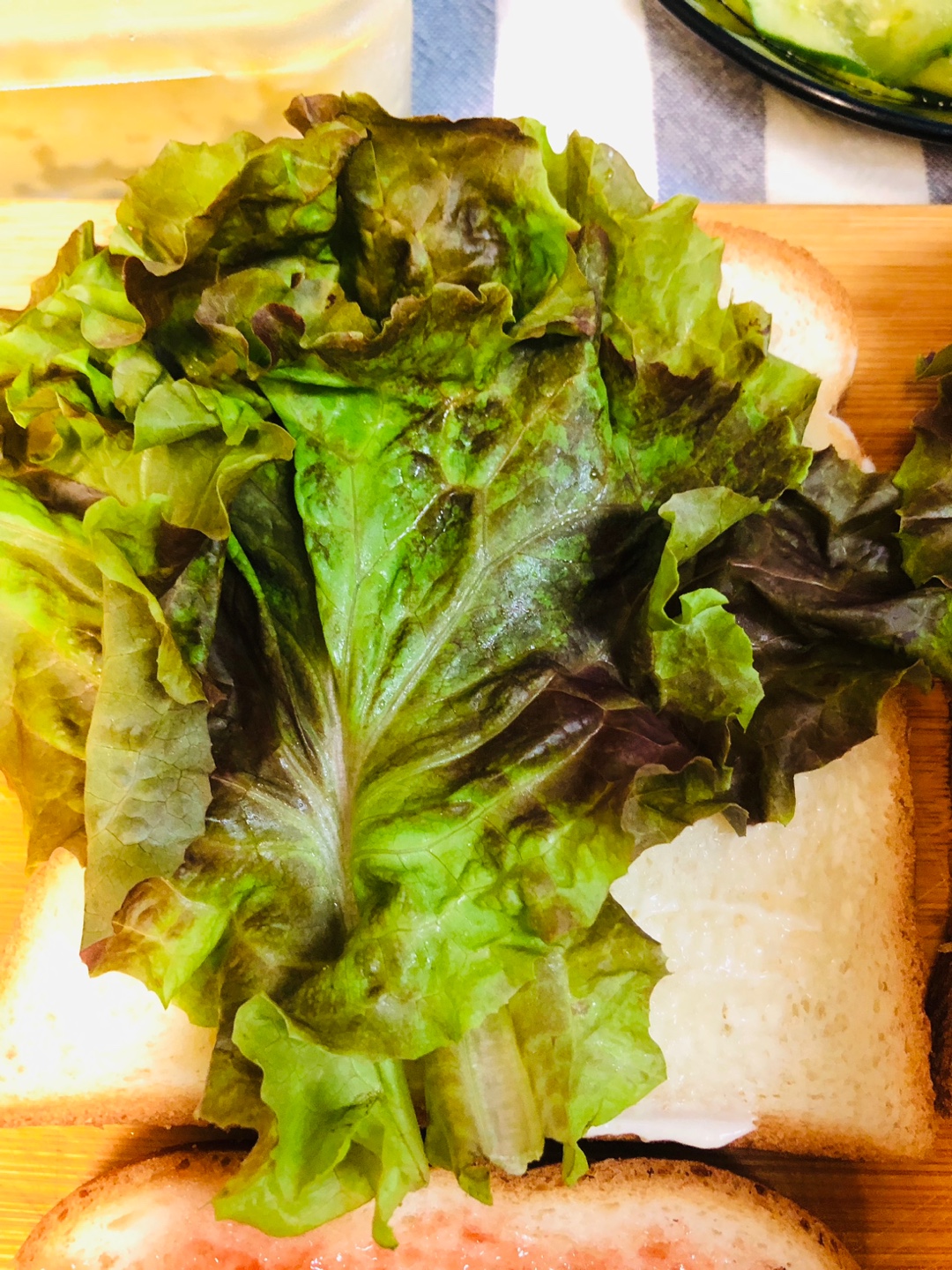 상추 ->딸기잼 바른 식빵으로 덮어주기