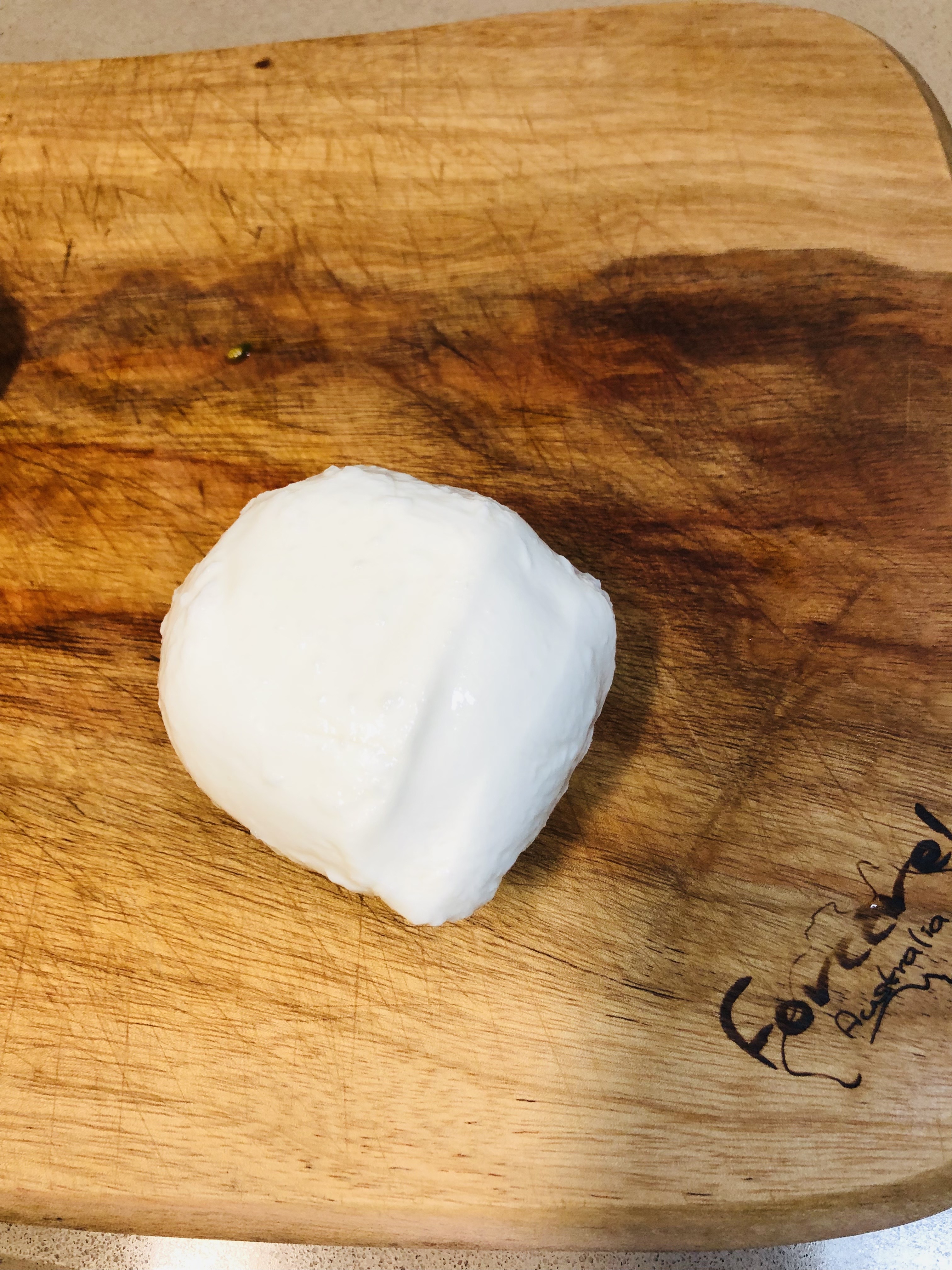 2. 모차렐라 치즈에 물은 버리고 모짜렐라 치즈를 반으로 가르고 편으로 썰어주세요