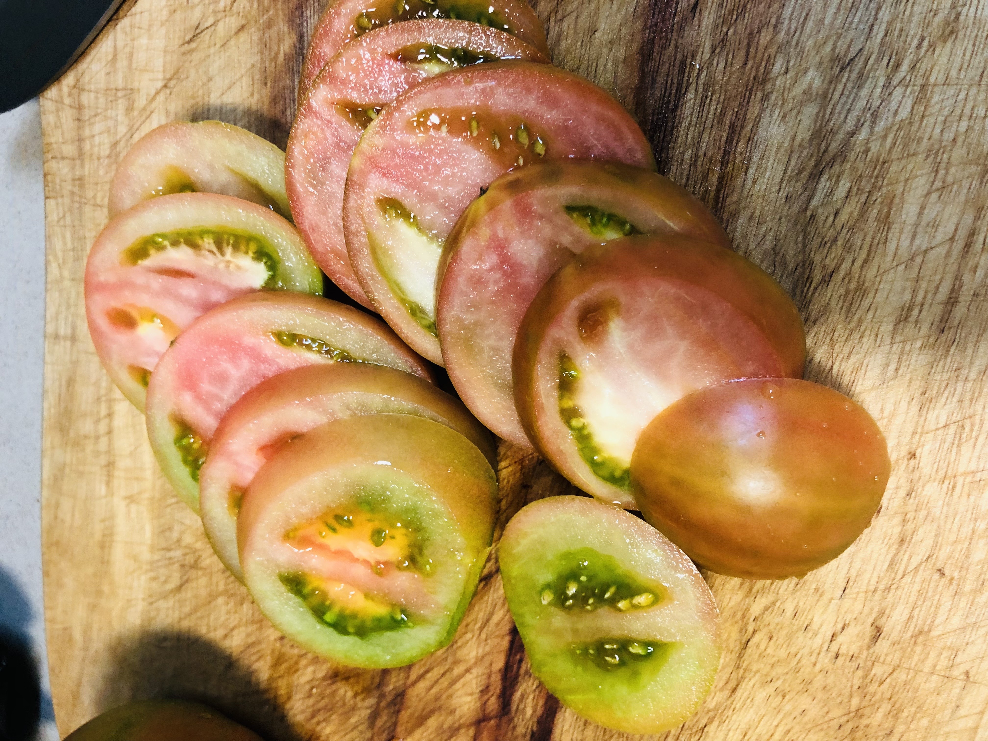 1. 토마토를 잘 씻어서 편으로 썰어주세요. (사실 토마토는 생으로 많이 먹는데 데쳐서 먹으면 영양소 흡수율이 훨씬 높아진고 합니다.)