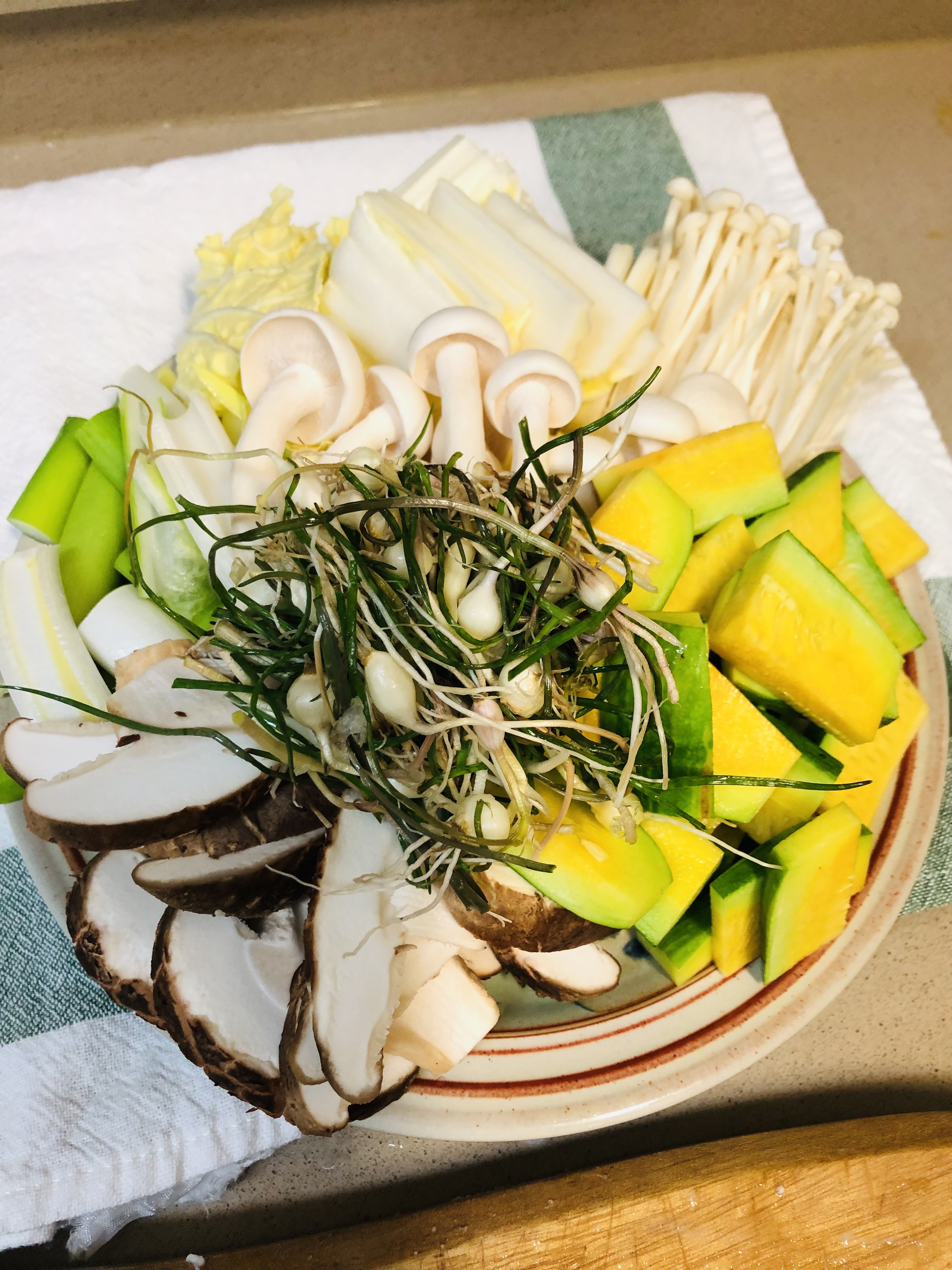 연두부, 호박, 대파, 종류별 버섯(팽이, 표고, 만가닥),