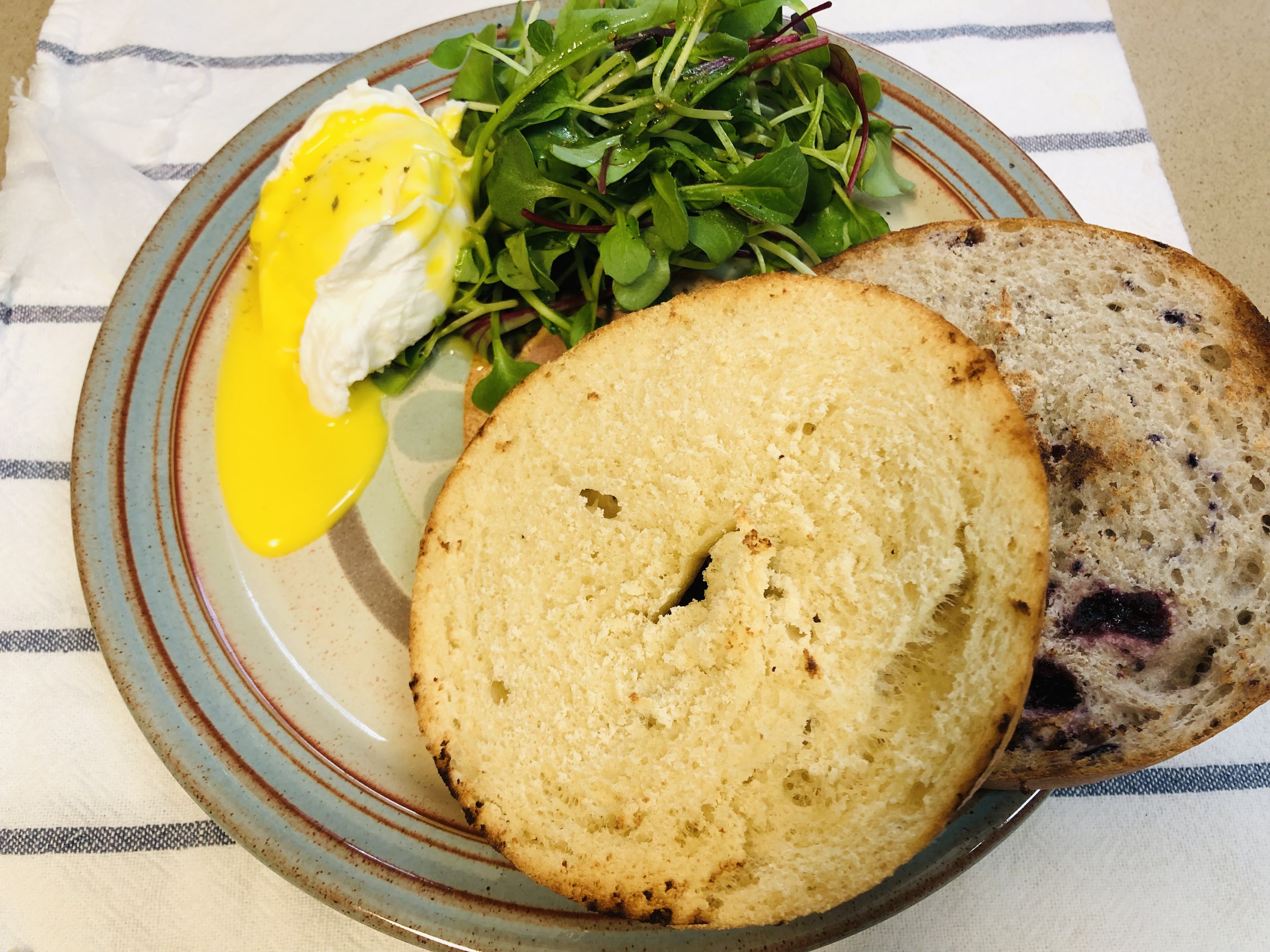 전 베이글에 크림치즈를 발라먹는 걸 좋아해서 크림치즈 바르고 어린잎 샐러드 올려서 먹었더니 good~!!!