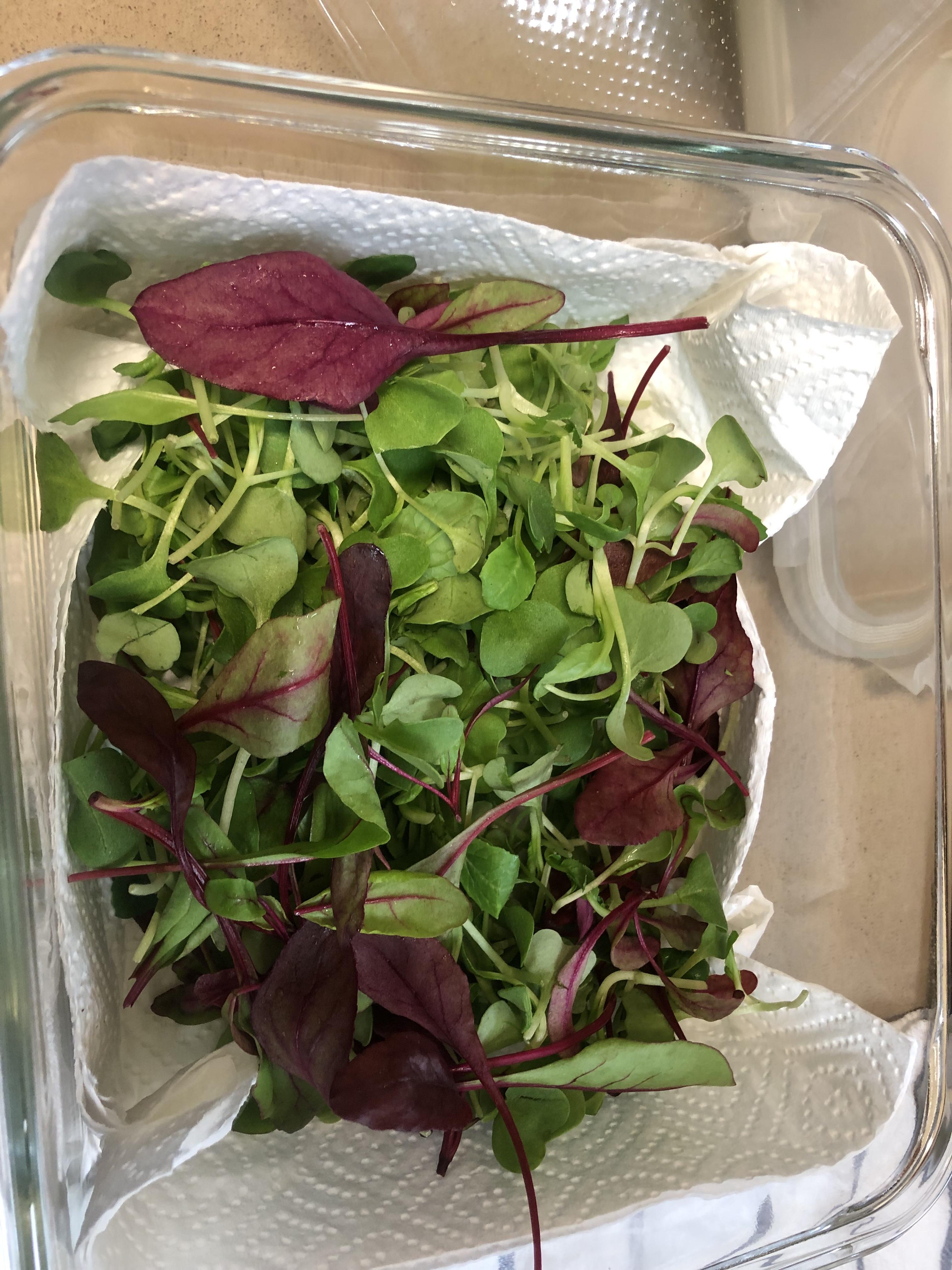 (보관할 때 키친타월 깔고 어린잎 채고 넣고 위에 키친타월 올려 보관하면 며칠은 싱싱하게 보관할 수 있어요~)