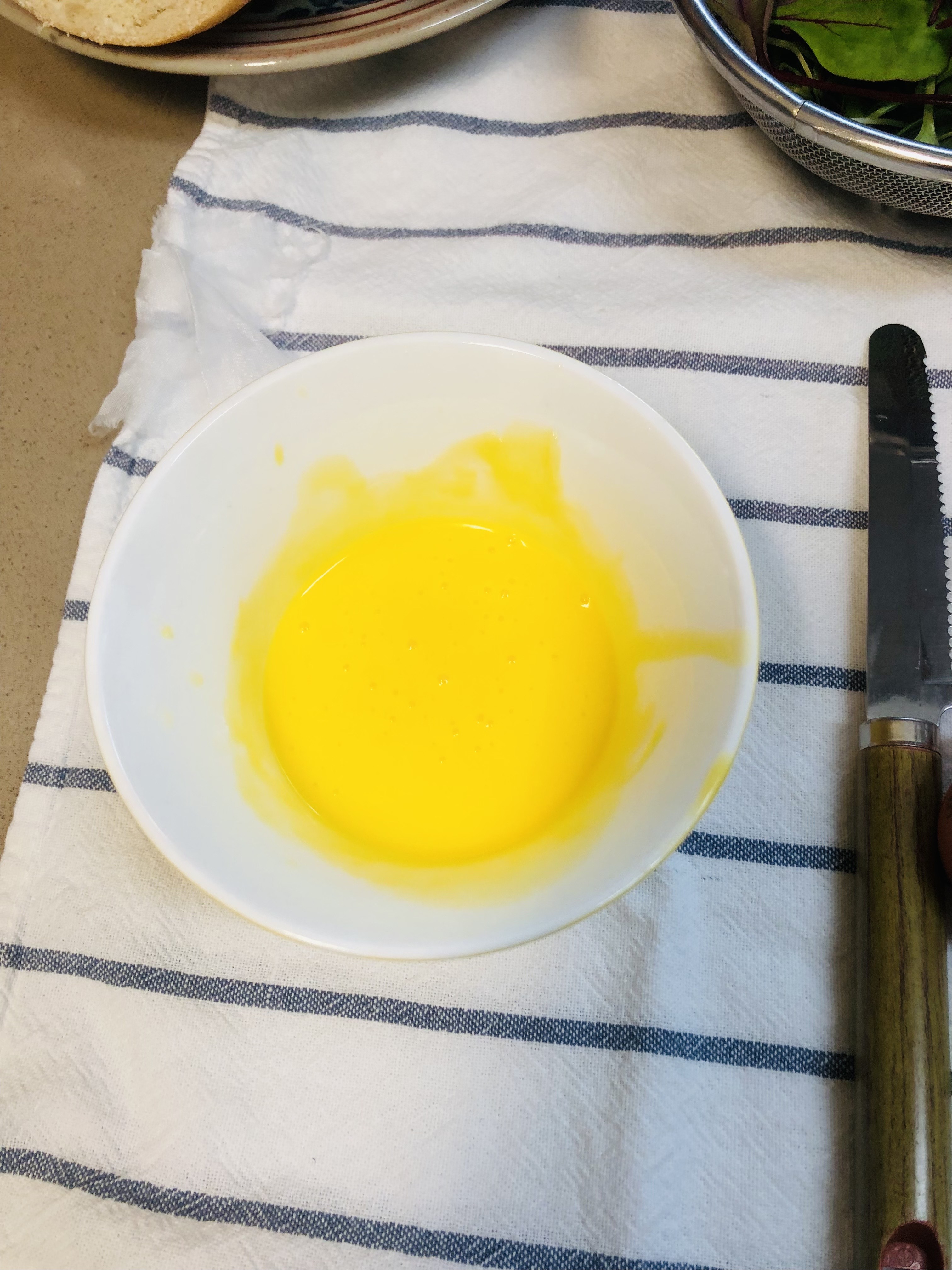 달걀노른자 :2개 , 녹인버터(무염): 1큰술, 레몬즙: 1작은술, 소금 :한 꼬집